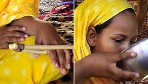 Mondanom sem kell,hogy szegény kislány sírt,tiltakozott néha rá is ütött az anyja kezére mert már nem bírt nyelni…..öklendezett, kiköpte,kihányta a tejet……erre az a degenerált “anyja” 2 faág közé szorította a bokáját és jó erősen rámarkolt, hogy a gyerek ha elkezd ordítani akkor újabb adagot tömhet belé……….és mindezt azért,hogy hamar meghízzon és férjhez adják !!!