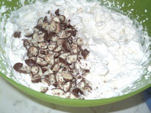1 vagy 2-3 zacskó (ez attól függ épp milyen csoki desszertet találsz, amúgy a képen látható csokis töltött golyót tettem bele a krémbe ami 150 grammos volt….) ha a Milka stars snax akkor kell bele legalább 2-3 zacskó(a kisebb fajtából ami talán 70 grammos).