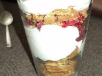 Egyszerű,gyors és nagyon finom! Nem túl édes,frissítő desszert!Már próbáltam több féle kekszel, győrivel,simával….de nekem a legjobban a győri sima zabfalatos kekszel ízlett.Recept (4 pohárhoz):-12 db győri zabfalatok keksz-2 dl tejszín -3 kis poharas natúr joghurt(jobb minőségűt ajánlanék,mert ami túl folyós az hamar szottyos lesz a tejszínhabbal kikeverve)-10-15 dkg málna vagy eper,áfonya…..ami ép van otthon-porcukor ízlés szerint(én …